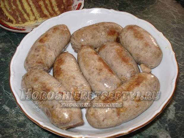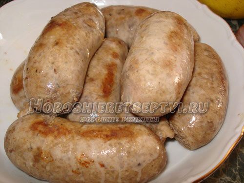 А потом домашние колбаски обжариваются с двух сторон на свежем сливочном масле.