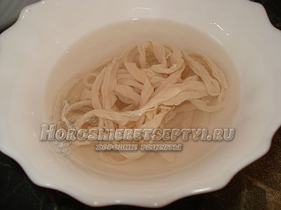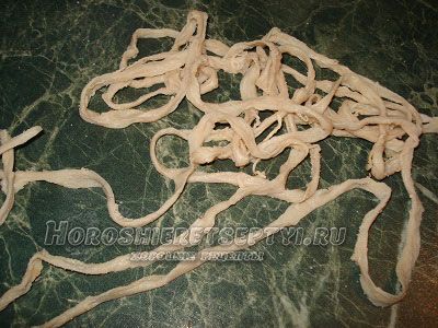 Пока готовится смесь, отмерьте нужное количество черевы. В рецепте используется готовая вяленая оболочка, засоленная в соли.